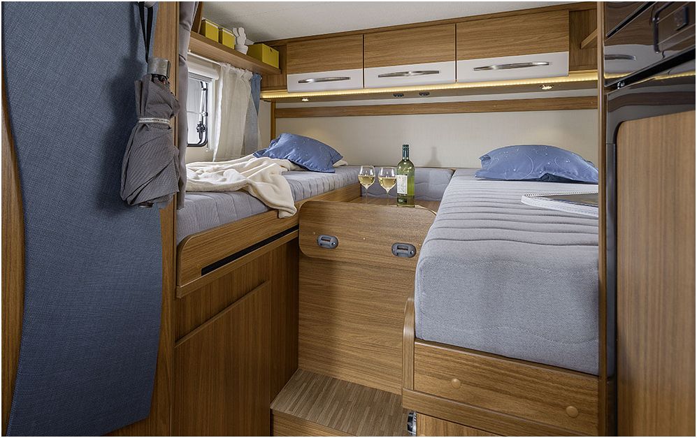 Everyone on board: a pleasing washroom, comfortable beds, practical kitchen, functional layouts and a homely living area. Great furnishings and fittings plus elegant design for unadulterated caravaning bliss!
